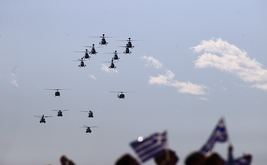 Κάποιες χαρακτηριστικές στιγμές ήταν η παρουσία των Apache και των Rafale στον ουρανό, αλλά και το συγκλονιστικό μήνυμα του πιλότου της ομάδας Ζευς.