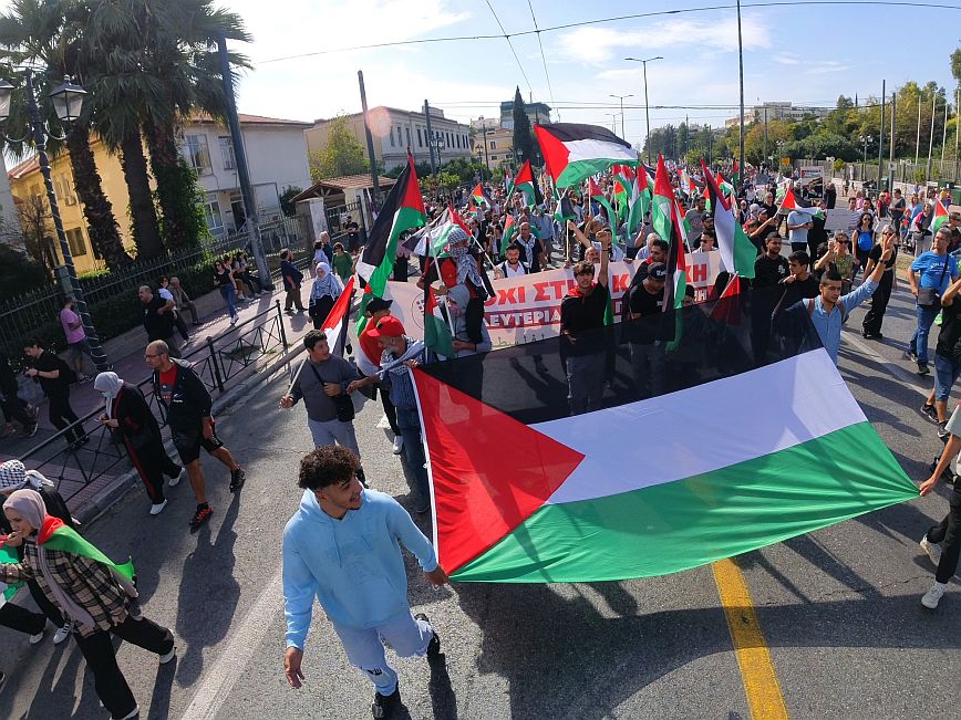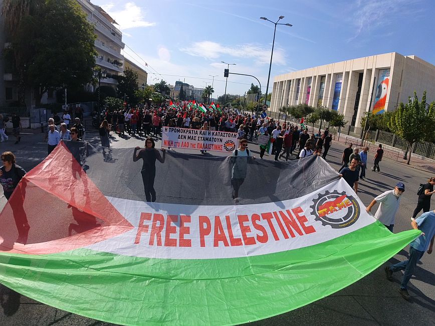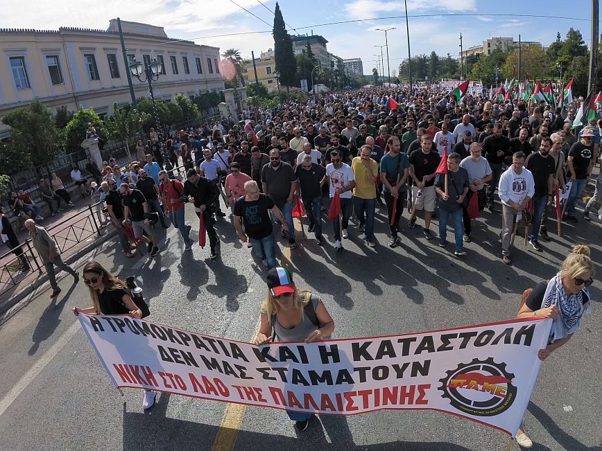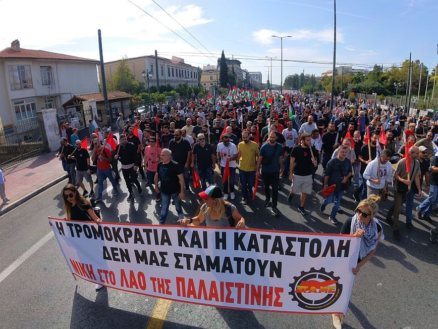 Σε εξέλιξη βρίσκεται πορεία του ΠΑΜΕ στο κέντρο της Αθήνας με βασικό μήνυμα «Λευτεριά στην Παλαιστίνη», η οποία κατευθύνεται προς την πρεσβεία του Ισραήλ. Πλήθος κόσμου δίνει το παρών, με βασικό αίτημα τον τερματισμό του πολέμου στη Λωρίδα της Γάζας.