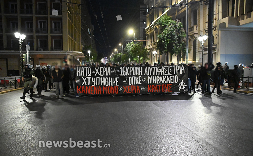 Η πορεία διαμαρτυρίας πραγματοποιήθηκε για τον τραυματισμό της 16χρονης το Σάββατο σε επεισόδια στο Νέο Ηράκλειο.