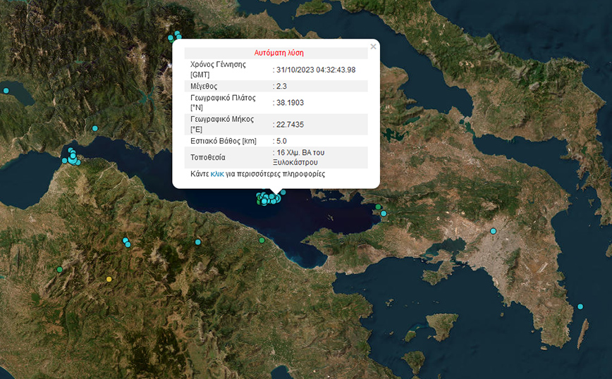 Σεισμός 3 βαθμών της Κλίμακας Ρίχτερ σημειώθηκε νωρίς το πρωί της Τρίτης (31/10) στον Κορινθιακό κόλπο. Λίγα λεπτά αργότερα ακολούθησε μετασεισμός μικρότερης έντασης στην ίδια περιοχή.