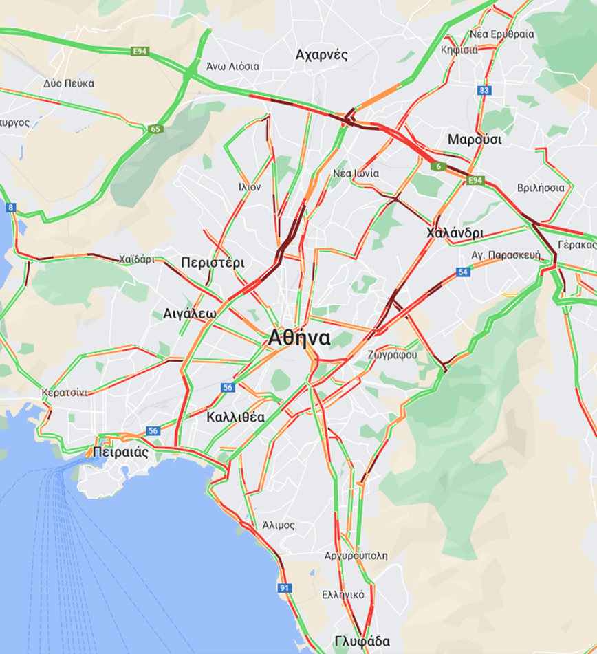 Στην Αττική Οδό σημειώνονται καθυστερήσεις άνω των 30 λεπτών από Φυλής έως Κηφισίας.