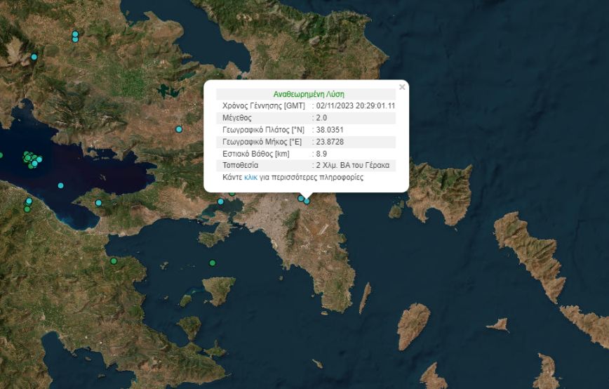 Ο σεισμός σύμφωνα με το Γεωδυναμικό Ινστιτούτο ήταν μεγέθους 2 Ρίχτερ και το επίκεντρό του εντοπίζεται στα 2 χιλιόμετρα βορειοανατολικά του Γέρακα.