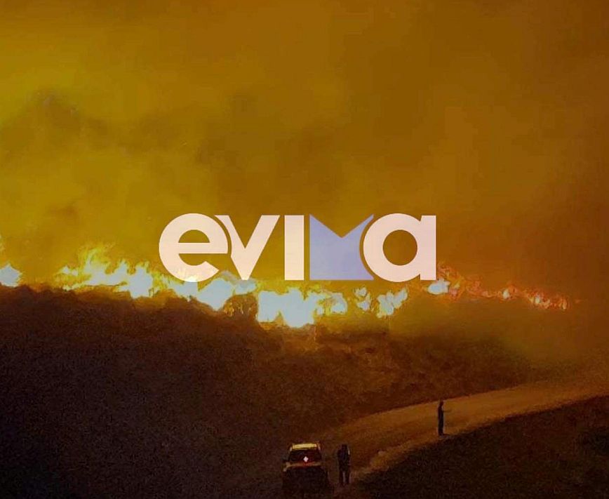 Η φωτιά ξεκίνησε από το χωριό Αμυγδαλιά του Δήμου Κάρυστου και έχει επεκταθεί σε δεκάδες χωριά στο Κάβο Ντόρο στη Νοτιότερη πλευρά του νησιού.