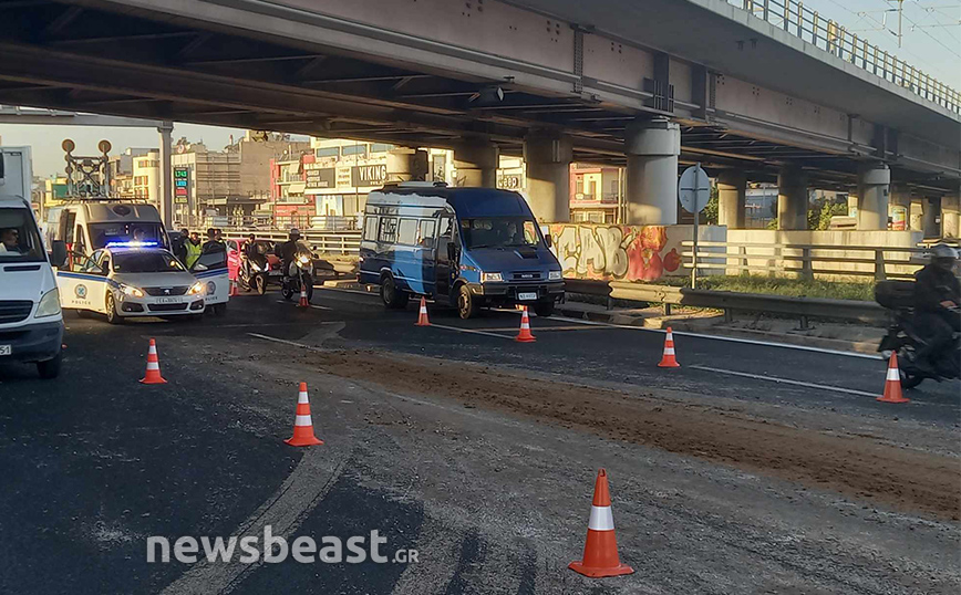 Λόγω του περιστατικού η Τροχαία, που έσπευσε στο σημείο, έχει διακόψει την κυκλοφορία των οχημάτων και στις δύο λωρίδες κυκλοφορίας προκειμένου τα συνεργεία της περιφέρειας να καθαρίσουν το οδόστρωμα.