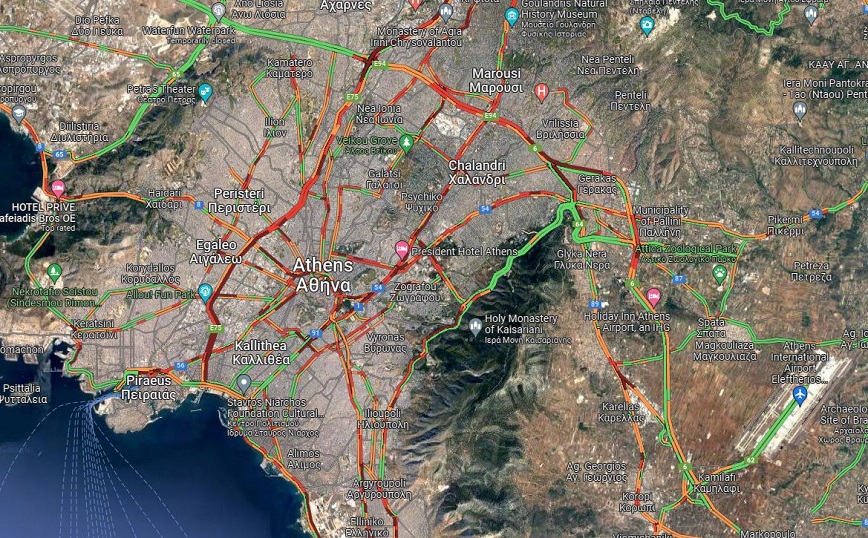 Σημειωτόν διεξάγεται η κίνηση στην Εθνική Οδό, στη Λεωφόρο Αθηνών, στην Κωνσταντινουπόλεως, στην Ιερά Οδό, στη Θηβών αλλά και η Λεωφόρος Μεσογείων.