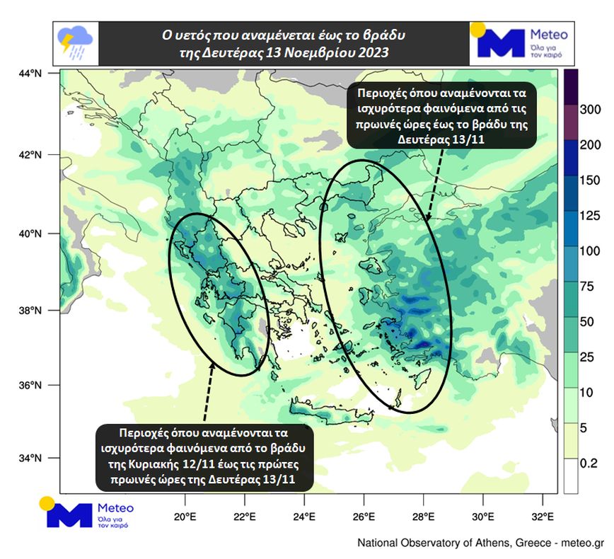 Τα φαινόμενα αναμένονται να σταματήσουν αργά τη νύχτα της Δευτέρας 13/11.