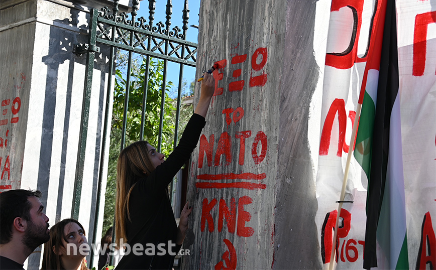 «50 χρόνια από τον ηρωικό ξεσηκωμό. “Αγώνας χαραγμένος στου λαού τη μνήμη … εκείνος ο Νοέμβρης σπίθα που δε σβήνει!”. Το Πολυτεχνείο ζει στους σύγχρονους αγώνες. Καμία εμπλοκή της χώρας στην σφαγή στη Γάζα. Αλληλεγγύη στο λαό της Παλαιστίνης. Αποκλειστικά δημόσιες και δωρεάν σπουδές. Ζωή με δικαιώματα» γράφει το γιγάντιο πανό των φοιτητικών συλλόγων της Αθήνας στέλνοντας το δικό το μήνυμα κατά της εμπλοκής της Ελλάδας στον πόλεμο στη Μέση Ανατολή.