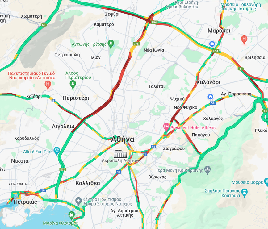 Σημαντικές καθυστερήσεις σημειώνονται αυτήν την ώρα στον Κηφισό μετά από τροχαίο στο ύψος της Ιεράς οδού. Αργές ταχύτητες και στις Β. Σοφίας, Αλίμου Κατεχάκη, Συγγρού και Κηφισίας.