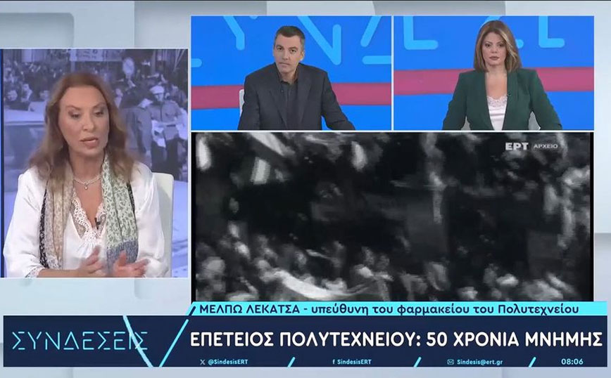«Τα νέα παιδιά πρέπει να μάθουν τι έγινε» διαμήνυσε το πρωί της Παρασκευής (17/11) η υπεύθυνη του φαρμακείου του Πολυτεχνείου, μιλώντας για τη συμπλήρωση 50 ετών από τη εξέγερση. «Δεν μπορεί να λένε πως δεν υπάρχουν νεκροί. Είχαμε φτιάξει ιατρείο και μας έφερναν χτυπημένους από σφαίρες» επεσήμανε η υπεύθυνη του φαρμακείου του Πολυτεχνείου, Μέλπω Λεκατσά.