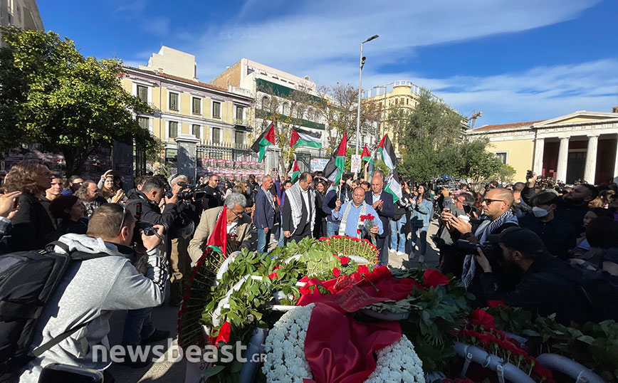 Στο Πολυτεχνείο βρέθηκε σήμερα το πρωί ο πρέσβης της Παλαιστίνης, Γιουσέφ Ντορχόμ, για να καταθέσει στεφάνι στο πλαίσιο των εκδηλώσεων για την 50ή επέτειο της εξέγερσης. Σημειώνεται πως ήδη από προχθές η σημαία της Παλαιστίνης αναρτήθηκε σε διάφορα σημεία στον χώρο του Πολυτεχνείου.