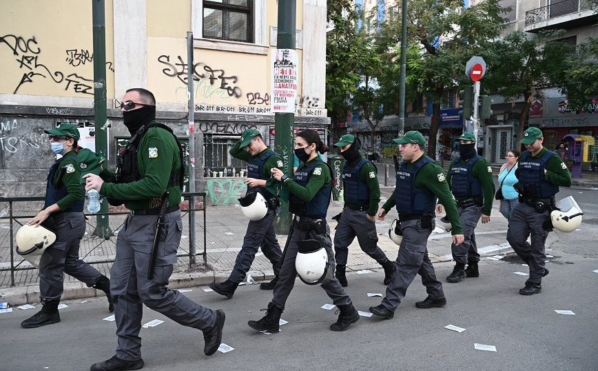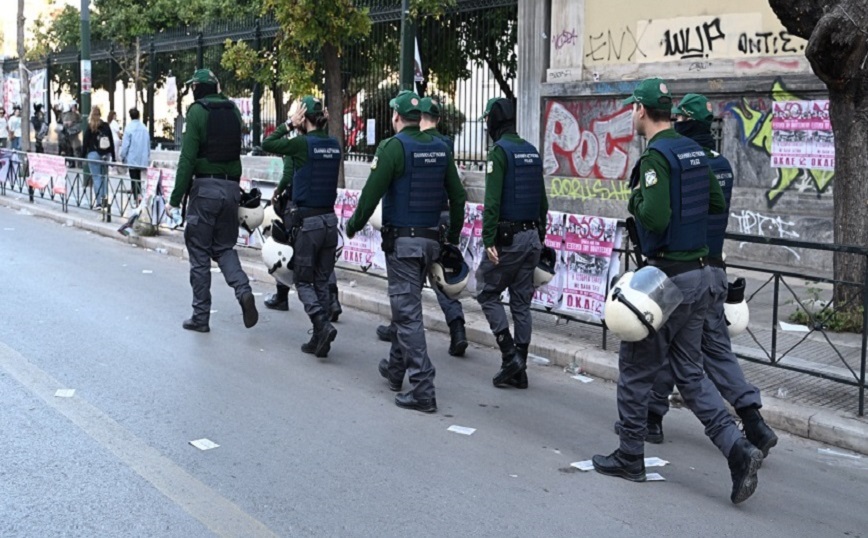 Η ομάδα της Πανεπιστημιακής Αστυνομία, παρατάχθηκε στην οδό Πατησίων μπροστά στο Πολυτεχνείο.