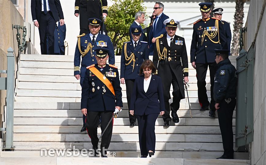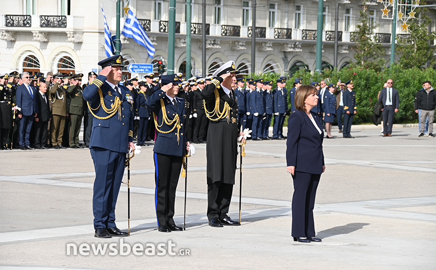 Ημέρα την Ενόπλων Δυνάμεων σήμερα 21 Νοεμβρίου, η οποία συμπίπτει με τα Εισόδια της Θεοτόκου. Στο Σύνταγμα αποδίδονται τιμές στις Ένοπλες Δυνάμεις της χώρας, με την Κατερίνα Σακελλαροπούλου να καταθέτει στεφάνι.