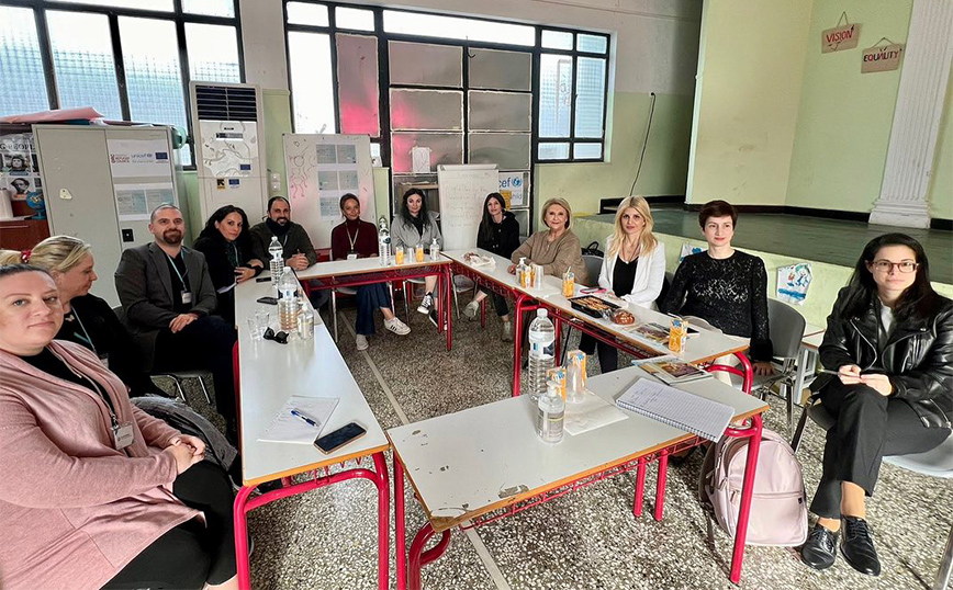 Τους ξενάγησε ο διοικητής Θωμάς Παπακωνσταντίνου, παρουσία της Παυλίνας Σπανδώνη, μέλους της Επιστημονικής Ομάδας του Εθνικού Σχεδίου Δράσης, τόσο στα γραφεία κοινωνικής ένταξης και ψυχοκοινωνικής υποστήριξης, όσο και στο σχολείο της μη τυπικής εκπαίδευσης που διευκολύνει την μετάβαση των παιδιών στην τυπική εκπαίδευση και στο δημόσιο σχολείο.