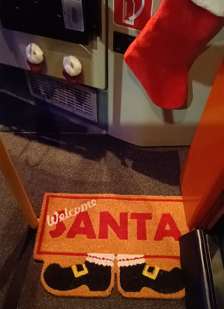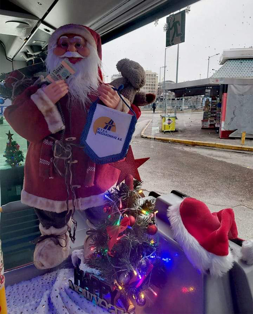 Έλατο, γιρλάντες, λαμπιόνια, κρεμασμένες μπότες, μέχρι και πατάκι εισόδου με καλωσόρισμα για τα Χριστούγεννα, έχουν «ντύσει» όχι κάποιο σπίτι, ένα γραφείο ή κατάστημα, αλλά ένα αστικό λεωφορείο. Ο οδηγός της γραμμής «57 Ωραιόκαστρο-Αριστοτέλους», που εκτελείται από το ΚΤΕΛ Θεσσαλονίκης στόλισε το όχημα μαζικής μεταφοράς με διάκοσμο βγαλμένο από γιορτινό παραμύθι.