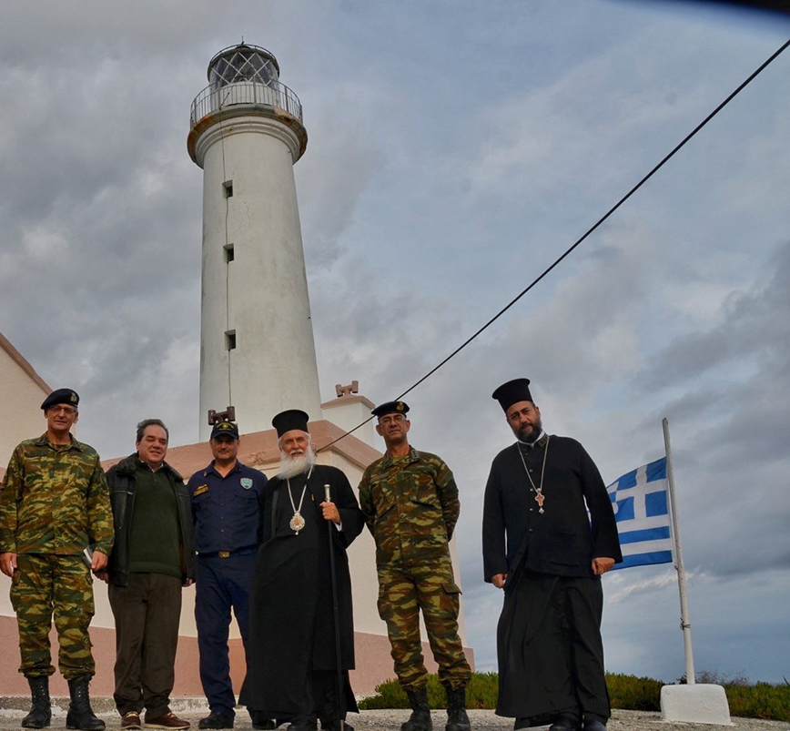 Ο Σεβασμιώτατος μοίρασε στους ακρίτες φαντάρους γλυκά και το Ιερό Ευαγγέλιο εκ μέρους του Αρχιεπισκόπου κ. Ιερωνύμου και διαβίβασε στους ακρίτες τις ευχές και τον έπαινο του Μακαριωτάτου για την προσφορά τους στην Πατρίδα.