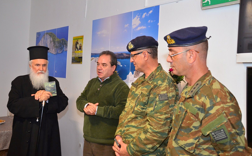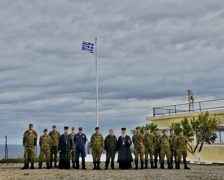 Ο Σεβασμιώτατος με τον κ. Δήμτσα, επισκέφθηκαν με την συνοδεία του Στρατιωτικού Διοικητή Ταξιάρχου κ. Ιωάννη Κορρέ τα ακριτικά φυλάκια στην Πλάκα και στη Φυσίνη του νησιού.