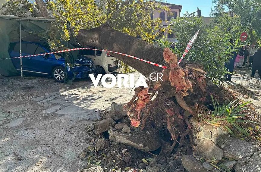 Το δέντρο έπεσε σε στέγαστρο και καταπλάκωσε δυο σταθμευμένα οχήματα, με το ένα μάλιστα να έχει σχεδόν καταστραφεί. Η πυροσβεστική υπηρεσία επιχειρεί στο σημείο και προσπαθούν να σηκώσουν τον πλάτανο, να τον απομακρύνουν και να απεγκλωβίσουν τα οχήματα. Στο σημείο επιχειρούν 9 άτομα με 3 οχήματα της υπηρεσίας.