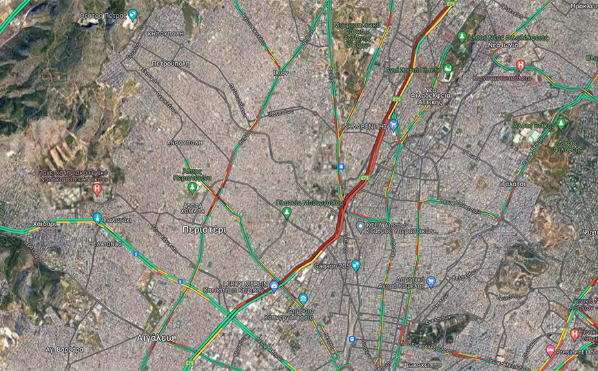 Στο κόκκινο είναι η κίνηση αυτή την ώρα και στο κέντρο της Αθήνας, με τα αυτοκίνητα να κινούνται με χαμηλές ταχύτητες, ενώ κυκλοφοριακή συμφόρηση καταγράφεται σε Σταδίου και Ακαδημίας.