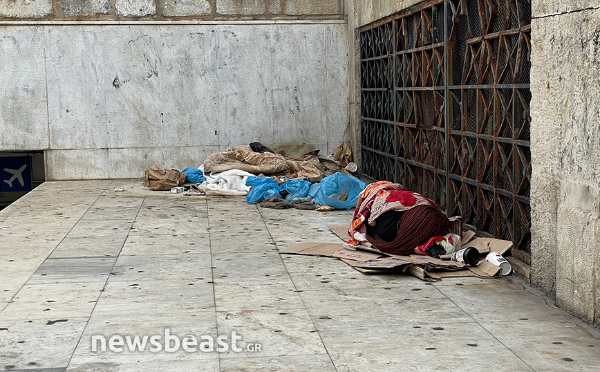 Άνθρωποι ταλαιπωρημένοι, άνθρωποι που δεν έχουν τίποτα, άνθρωποι που χωρούν ολόκληρη της ζωή τους σε λίγες πλαστικές σακούλες που κουβαλούν συνέχεια μαζί τους. Άνθρωποι που προσπαθούν να κοιμηθούν στα κρύα μάρμαρα και «στήνουν το χάρτινο σπιτικό τους» σε εσοχές και υπόστεγα κτιρίων.