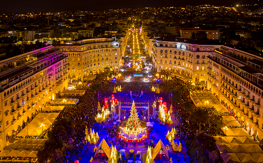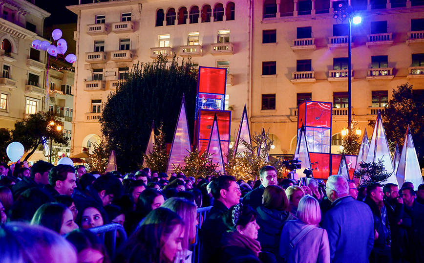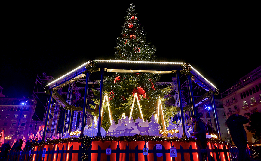 Η Θεσσαλονίκη υποδέχτηκε τα Χριστούγεννα με την φωταγώγηση του χριστουγεννιάτικου δέντρου ύψους 17 μέτρων στην πλατεία της Αριστοτέλους.