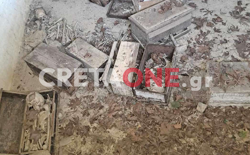 Αδιανόητες εικόνες είδαν το φως της δημοσιότητας από οστεοφυλάκιο στο Ηράκλειο και δείχνουν οστά με κρανία να είναι πεταμένα σε κοινή θέα.
