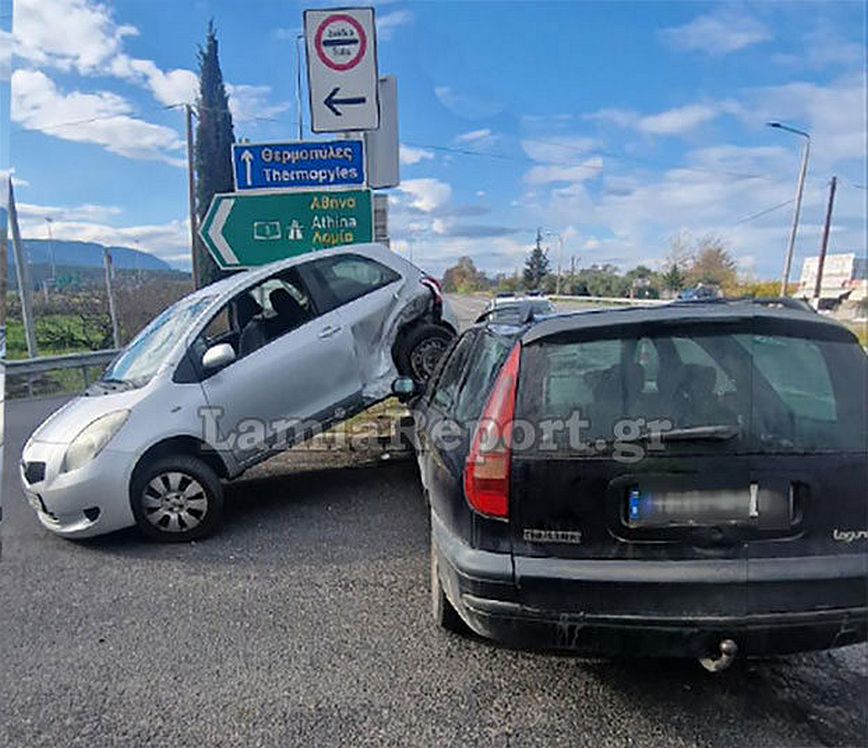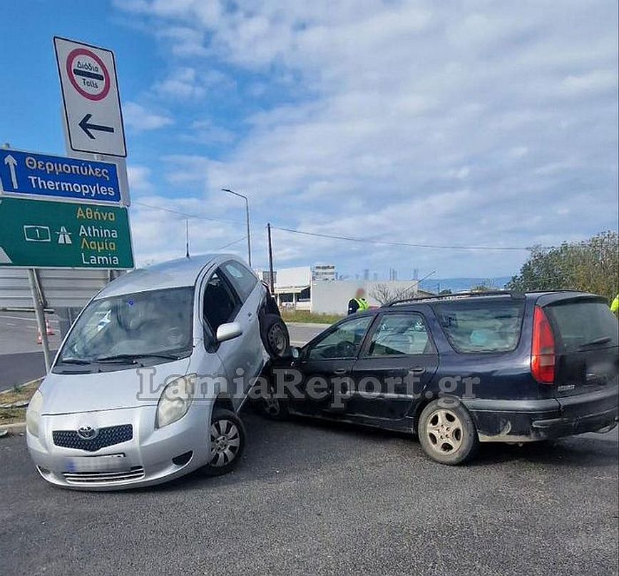 Και τα δύο οχήματα είχαν κατεύθυνση προς Λαμία και το ασημί Toyota που προπορευόταν επιχείρησε να στρίψει αριστερά στην είσοδο του ΠΑΘΕ, με το μαύρο Renault που είχε ξένες πινακίδες, να το εμβολίζει και να το σηκώνει στον αέρα, όπως φαίνεται και στις φωτογραφίες.