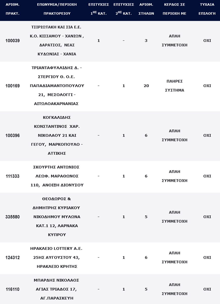Στη δεύτερη κατηγορία (5άρι) βρέθηκαν έξι τυχερά δελτία.