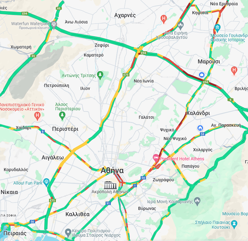 Αυξημένη κίνηση καταγράφεται στους περισσότερους κεντρικούς δρόμους του Λεκανοπεδίου από νωρίς το πρωί. Μεγάλα προβλήματα εντοπίζονται σε Κηφισίας και κέντρο.