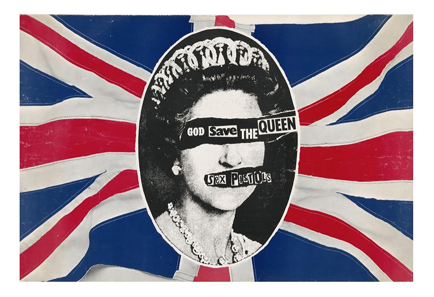 Jamie Reid. Sex Pistols, God Save the Queen 1977. Μια από τις πιο εμβληματικές πανκ εικόνες όλων των εποχών. Κατατάχθηκε στην κορυφή της λίστας με τα 100 καλύτερα εξώφυλλα άλμπουμ από το 2001. Το έργο τέχνης του Jamie Reidγια κοσμεί το εξώφυλλο του δίσκου «God Save The Queen» των Sex Pistols. Σχεδιάστηκε το 1977 κατά τη διάρκεια της ακμής της πανκ μουσικής σκηνής και τη χρονιά του ασημένιου ιωβηλαίου των Queen.