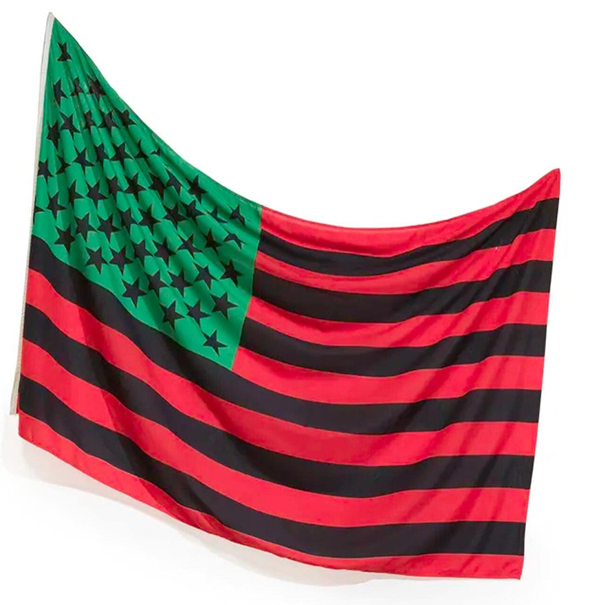 David Hammons. African American Flag 1990. Στο εν λόγω έργο παραποιείται η σημαία των Ηνωμένων Πολιτειών. Τα χρώματά της αντικαθίστανται με το κόκκινο, το πράσινο και το μαύρο του Παναφρικανικού Συνδέσμου, που ιδρύθηκε το 1914. Ο Hammons επινόησε για πρώτη φορά την αφροαμερικανική σημαία για την έκθεση Black USA στο Μουσείο Overholland στο Άμστερνταμ την άνοιξη του 1990.