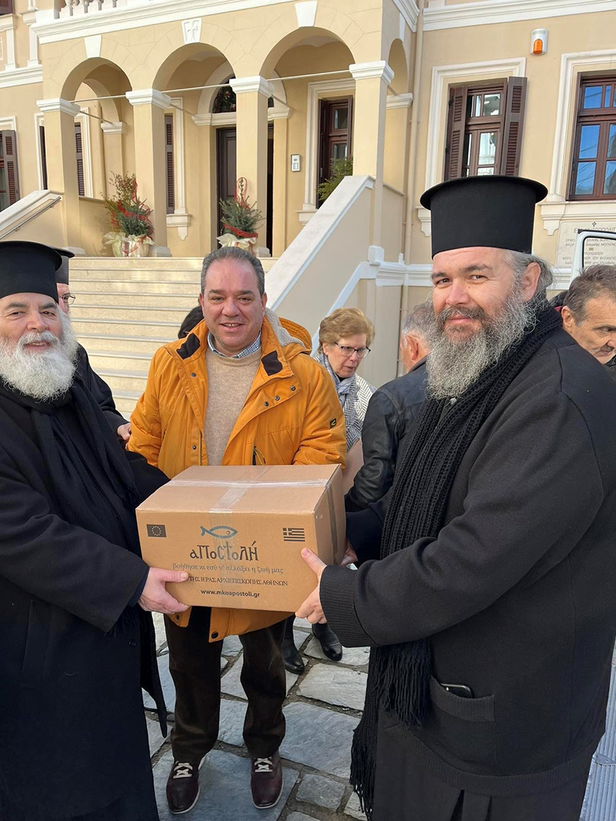 Ο Σεβασμιώτατος Μητροπολίτης Φλωρίνης, Πρεσπών και Εορδαίας κ. Ειρηναίος, με τον Γενικό Διευθυντή της «ΑΠΟΣΤΟΛΗΣ» Κωνσταντίνο Δήμτσα, παρέδωσαν τα δέματα αγάπης στους Ιερείς και τους εκπροσώπους των Ενοριακών Γενικών Φιλοπτώχων.