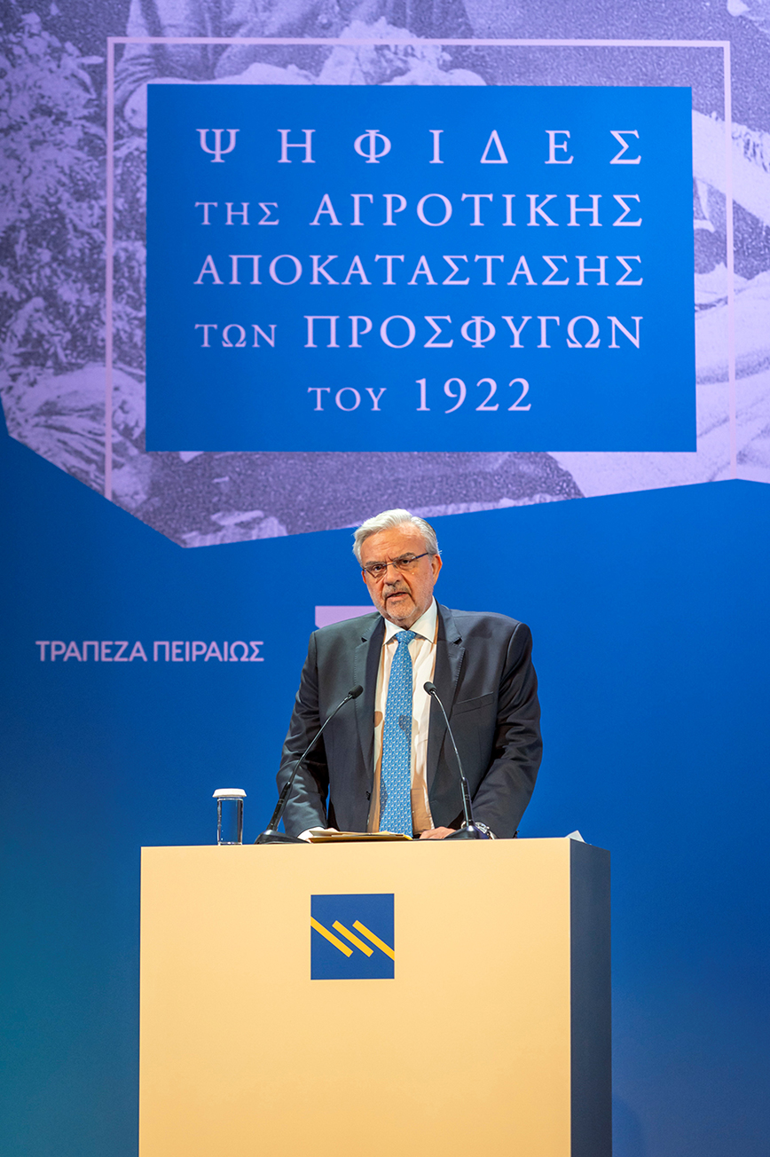Εγκατάστασης των Προσφύγων του 1922» που παρουσιάστηκε στην εκδήλωση. Η Τράπεζα υποστήριξε την έρευνα που πραγματοποιήθηκε από ερευνητική ομάδα υπό τον καθηγητή Νεότερης και Σύγχρονης Ιστορίας στο Τμήμα Αρχαιολογίας του ΑΠΘ κ. Ιάκωβο Μιχαηλίδη. Στην έρευνα και τη συγγραφή του έργου αξιοποιήθηκε αρχειακό υλικό από τα αρχεία της Αγροτικής Τράπεζας της Ελλάδος, η οποία σε μεγάλο βαθμό διαχειρίστηκε τη γεωργική προσφυγική αποκατάσταση. Το πλούσιο αυτό πρωτογενές υλικό έχει περιέλθει στο Πολιτιστικό Ίδρυμα του Ομίλου Πειραιώς και βρίσκεται στη διάθεση των ερευνητών.