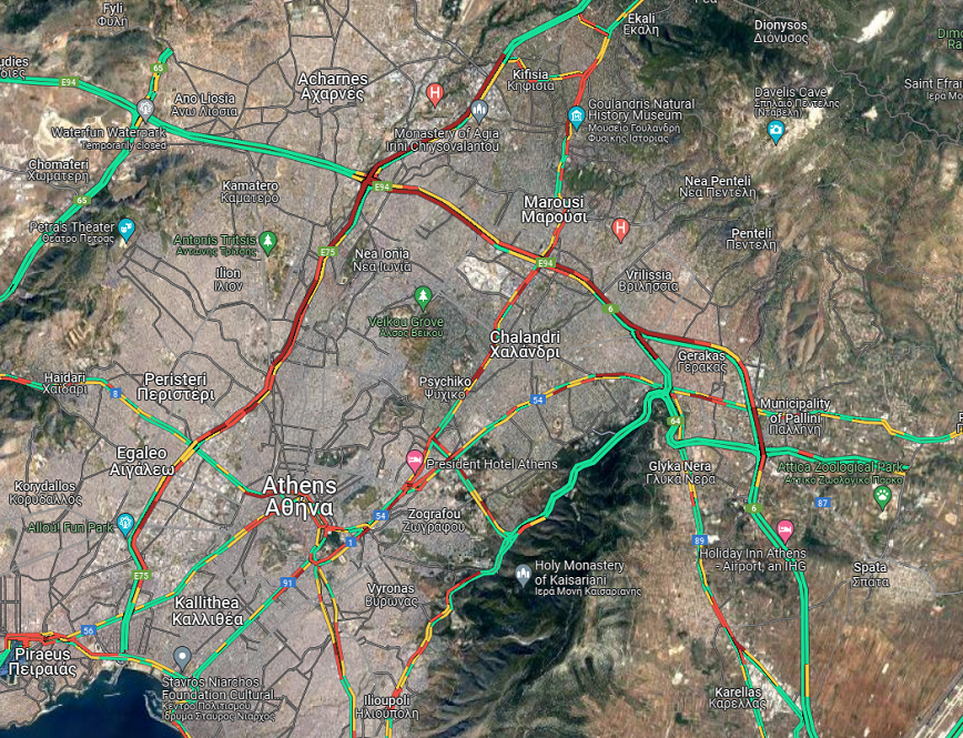 Ακολουθεί χάρτης με τους ασφυκτικά γεμάτους δρόμους: