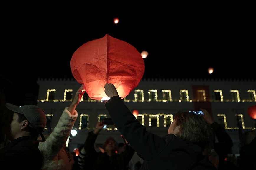 O ουρανός της Αθήνας φωτίστηκε σήμερα από εκατοντάδες φαναράκια την παραμονή των Χριστουγέννων, στο έθιμο της «Νύχτας των Ευχών».