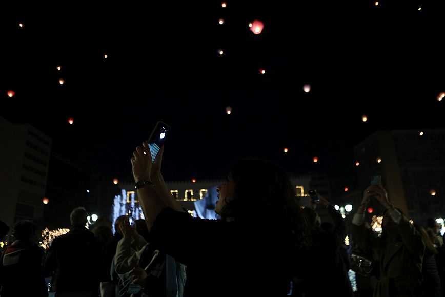Στο κέντρο της Αθήνας, στην πλατεία Κοτζιά, πολλοί ήταν και πάλι οι άνθρωποι που φώτισαν τον ουρανό με τα φαναράκια, σε ένα «μαγικό» θέαμα που «ζωντανεύει» την πόλη και την οδηγεί στα Χριστούγεννα με τον πιο όμορφο τρόπο.