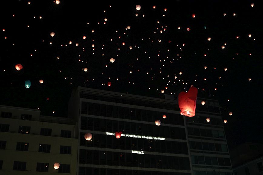 Το πανέμορφο σκηνικό, που έχει καθιερωθεί τα τελευταία 4 χρόνια, με χαμογελαστούς ανθρώπους, με ευχές και φώτα σε όλον τον ουρανό, από τα παραδοσιακά χάρτινα, βιοδιασπώμενα φαναράκια, καταγράφηκε σε εντυπωσιακές φωτογραφίες, μπροστά από το δημαρχείο όπου βρισκόταν και ο νέος δήμαρχος Αθηναίων Χάρης Δούκας.