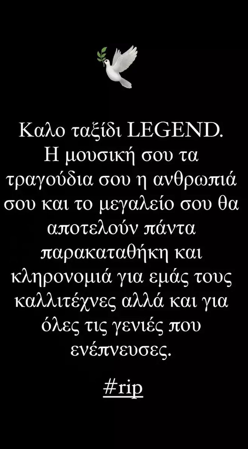 Ο Κωνσταντίνος Αργυρός έκανε μια σειρά από stories στο Instagram όπου μεταξύ άλλων έγραφε: «Καλό ταξίδι Legend».