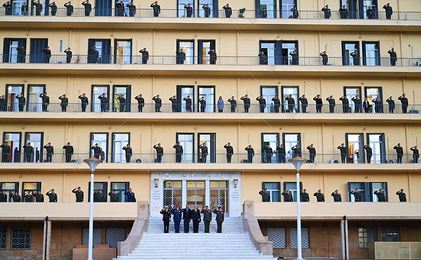 Τελετή απόδοσης τιμών στον επισμηναγό (Ι) Επαμεινώνδα Κωστέα, ο οποίος έχασε τη ζωή του εν ώρα καθήκοντος, στο στρατόπεδο Παπάγου κατά την έπαρση της σημαίας (ώρα 7:30 π.μ.), παρουσία της πολιτικής και στρατιωτικής ηγεσίας του υπουργείου Εθνικής Άμυνας.