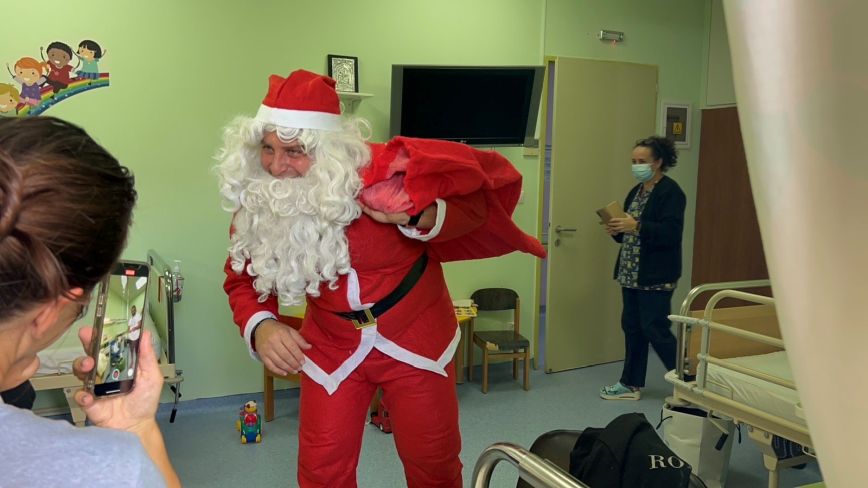 Οι πυροσβέστες, ως ιπτάμενοι Άγιοι Βασίληδες, «προσγειώθηκαν» από τον γερανό της Πυροσβεστικής στους προαύλιους χώρους του Βενιζέλειου -Πανάνειου νοσοκομείου χθες το βράδυ και σήμερα στο ΠΑΓΝΗ, και μοίρασαν δώρα και χαμόγελα στα νοσηλευόμενα παιδιά και τις οικογένειες τους, αλλά και σε κάθε ασθενή και εργαζόμενο του νοσοκομείου. Παράλληλα, η Μεικτή χορωδία Ελληνικής Μουσικής του Πολιτιστικού Συλλόγου Αγίου Ιωάννη Χωστού, υπό τη διεύθυνσης της Αργυρώς Ρέππα, τραγούδησε χριστουγεννιάτικα τραγούδια, πλαισιώνοντας μουσικά την εκδήλωση.