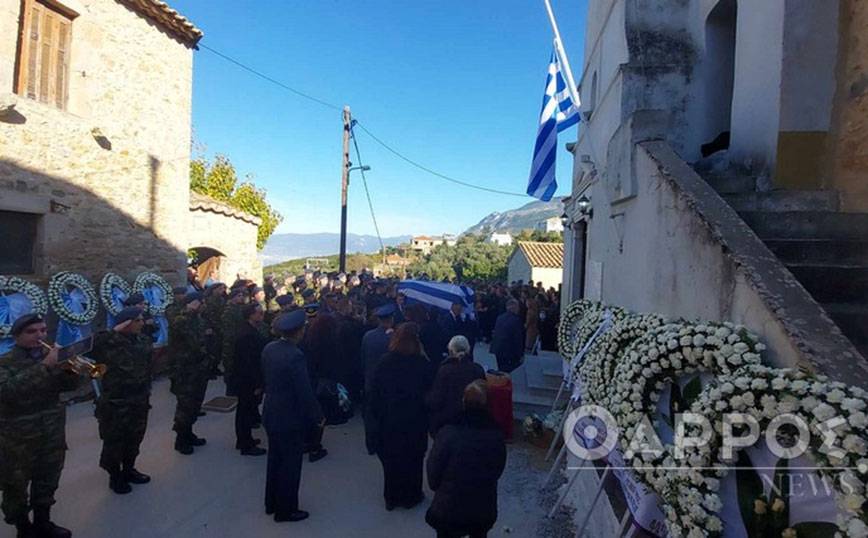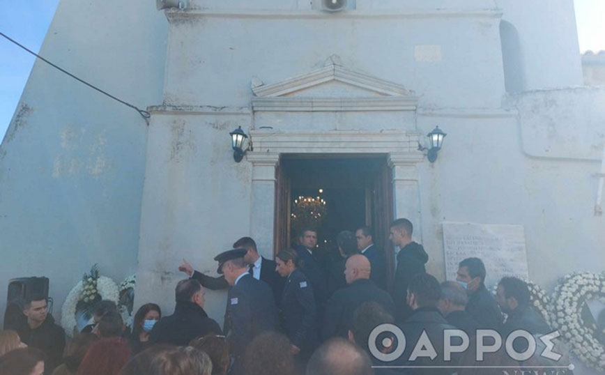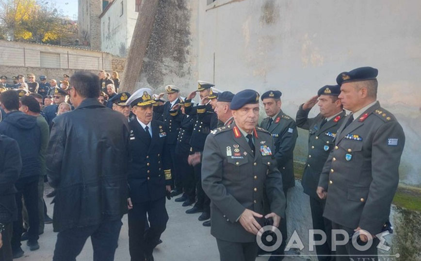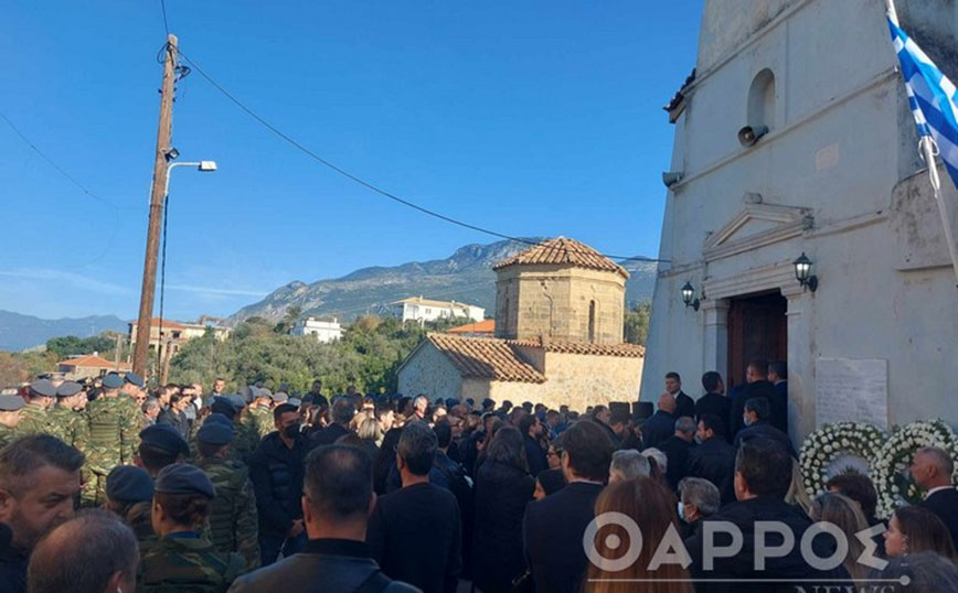 Πλήθος κόσμου συνέρρευσε στον ιερό ναό, για να πουν το τελευταίο αντίο στον επισμηναγό, αλλά και για να συμπαρασταθούν στα μέλη της οικογένειάς του, ενώ στρατιωτικό άγημα αποδίδει τιμές.