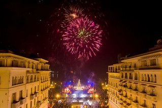 Χιλιάδες πυροτεχνήματα εκτοξεύτηκαν στον ουρανό της Θεσσαλονίκης από μία φορτηγίδα η οποία αγκυροβόλησε στον Θερμαϊκό κόλπο, στο ύψος του Λευκού Πύργου.