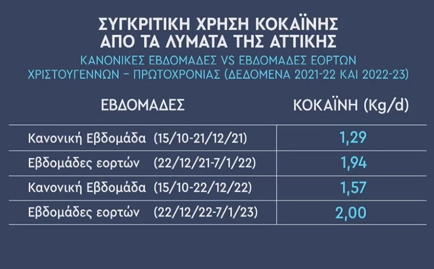 Αναλύοντας τα ενδιαφέροντα ευρήματα στα λύματα της Περιφέρειας Αττικής ο κ. Θωμαΐδης εστίασε στην αύξηση των ναρκωτικών ουσιών που παρατηρείται τις μέρες των εορτών.