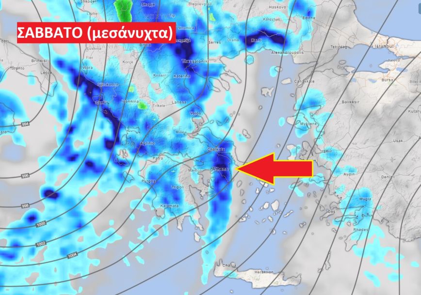 Σύμφωνα με τον μετεωρολόγο Γιάννη Καλλιάνο, «όλα τα νεότερα προγνωστικά στοιχεία εναρμονίζονται με την αυξημένη (πια) πιθανότητα, ότι περίπου τα μεσάνυχτα του Σαββάτου θα έχουμε ένα “πέρασμα” με καταιγίδες και από το νομό Αττικής. Δεν θα είναι μεγάλη η διάρκεια αυτού του “περάσματος”, ωστόσο, σε τοπικό επίπεδο, ενδέχεται οι καταιγίδες αυτές να είναι και ισχυρές.