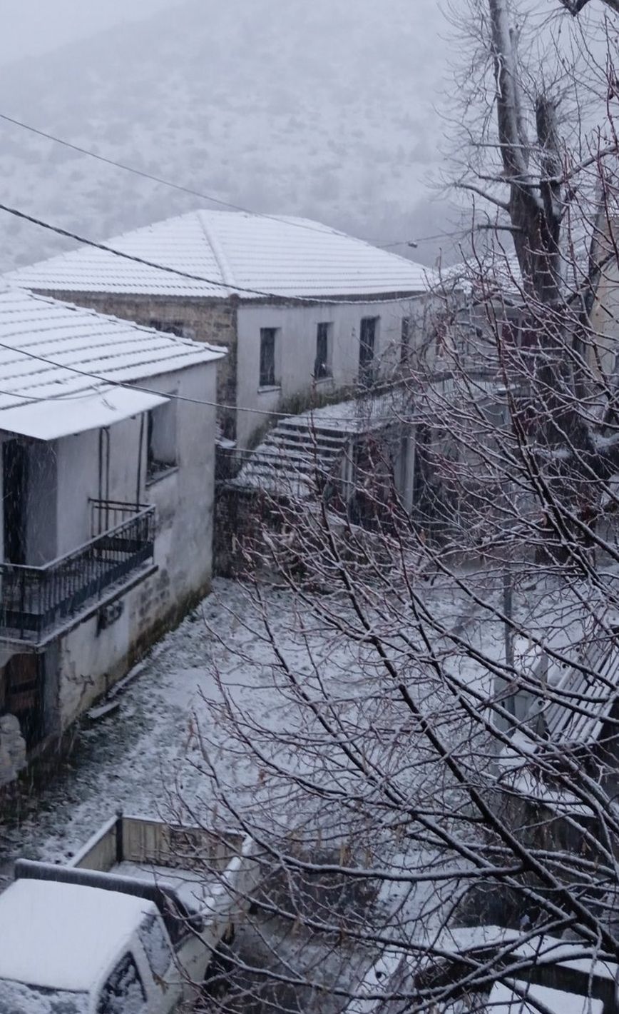 Λευκές εικόνες και στον Παραπόταμο του δήμου Τεμπών, λίγα μόλις χιλιόμετρα από τη Λάρισα, σύμφωνα με το onlarissa.gr.