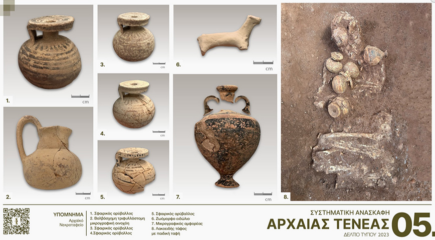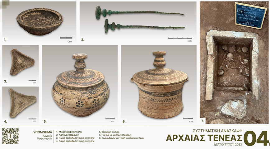 Τέλος, ανασκάφηκαν στη ζώνη των νεκροταφείων και δίπλα στο ρωμαϊκό ταφικό μνημείου ΙΙ του 2022 λακκοειδείς τάφοι ρωμαϊκών χρόνων και συστάδα αρχαϊκών τάφων πλούσια κτερισμένων.