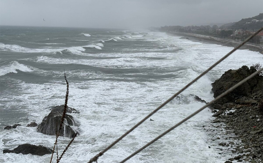 Το σκληρό της πρόσωπο δείχνει η κακοκαιρία που χτυπά τις τελευταίες ώρες τη Λάρισα. Όπως φαίνεται στις εικόνες και στο βίντεο τα κύματα στην παραλία του δήμου Αγιάς έχουν φτάσει στα όρια του παραλιακού δρόμου.