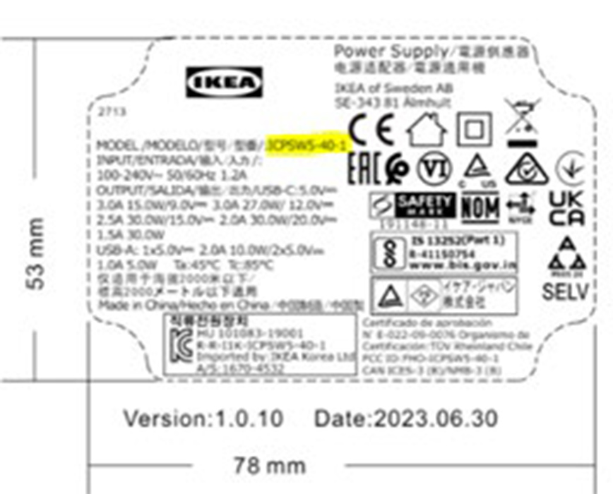Ο φορτιστής USB ÅSKSTORM 40W σε σκούρο γκρι μπορεί να αναγνωριστεί από τον αριθμό μοντέλου ICPSW5-40-1 που βρίσκεται στην ετικέτα στο πίσω μέρος του φορτιστή USB», τονίζει η εταιρεία σε σχετική ανακοίνωση.