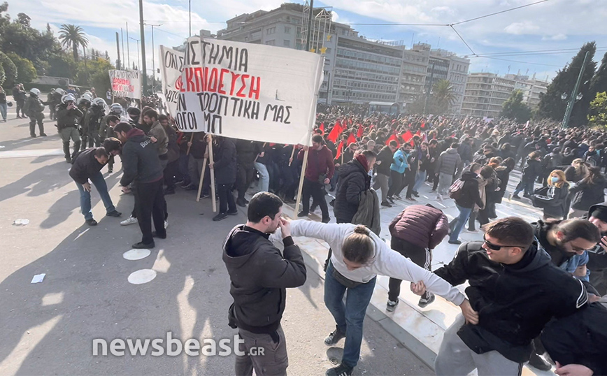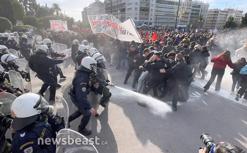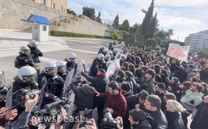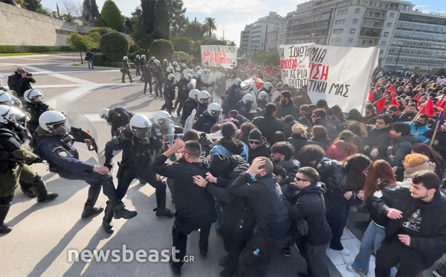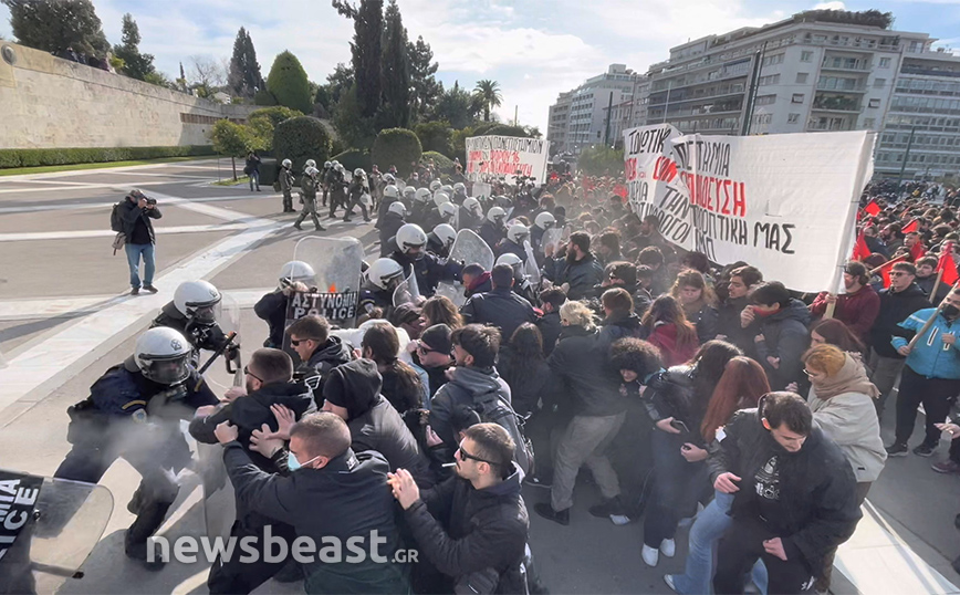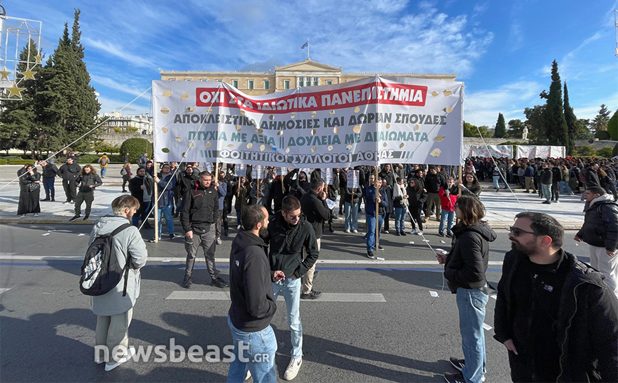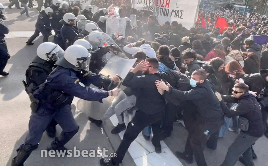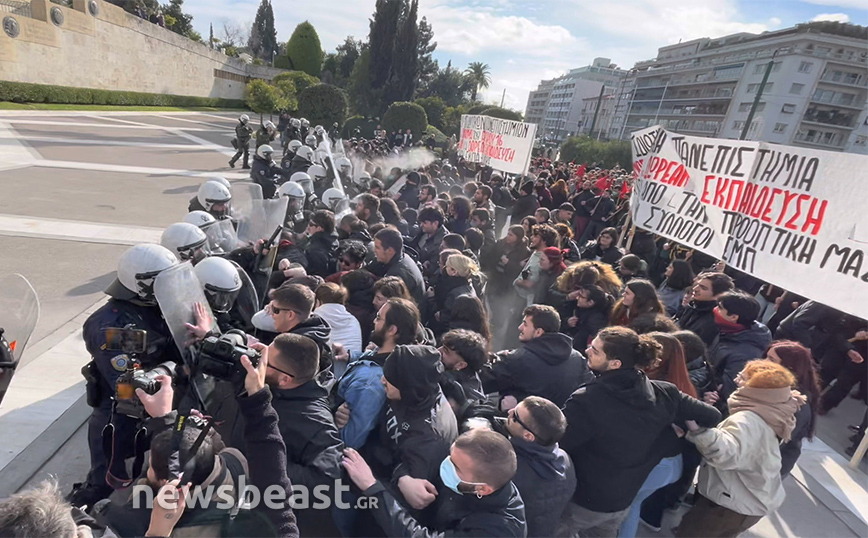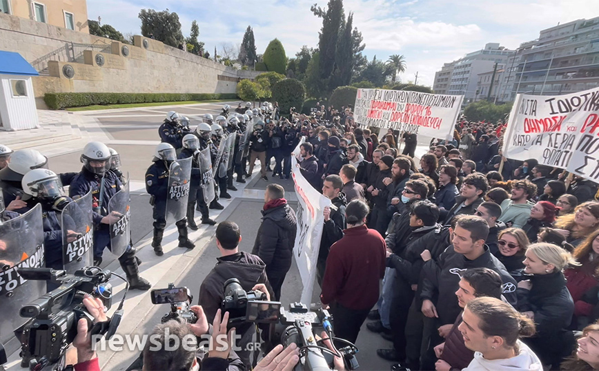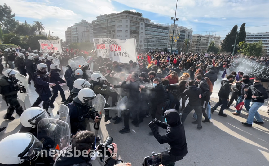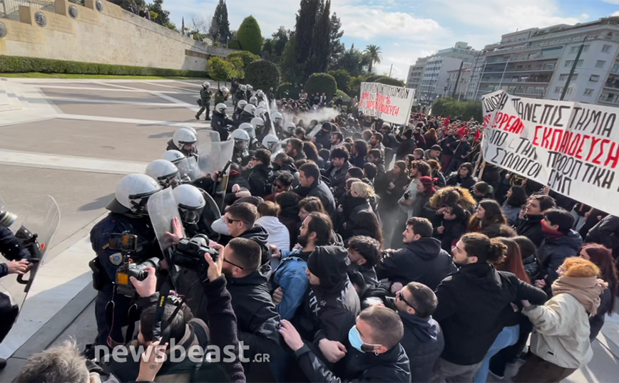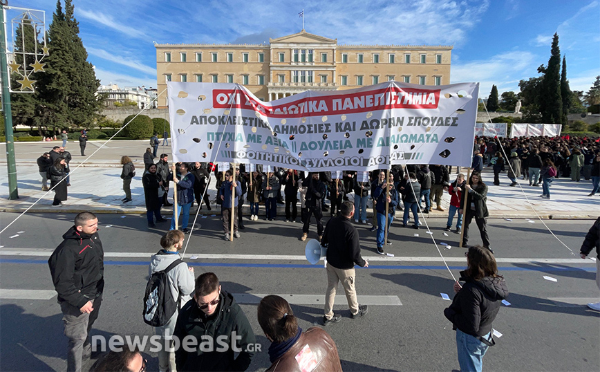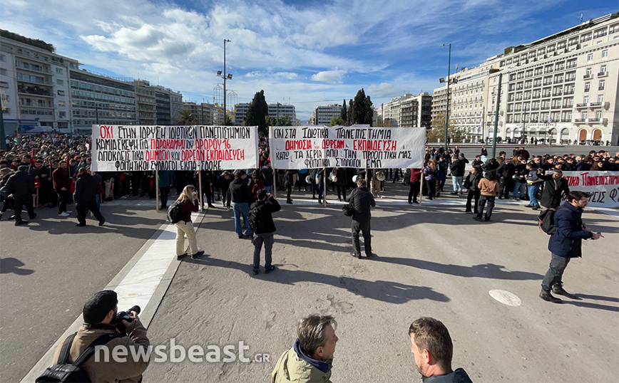 Έξω από τη Βουλή έφτασε η πορεία των φοιτητών στο κέντρο της Αθήνας. Εκατοντάδες διαδηλωτές διαμαρτύρονται για το νομοσχέδιο για τα ιδιωτικά πανεπιστήμια. Ένταση σημειώθηκε ανάμεσα σε φοιτητές και άντρες των ΜΑΤ, οι οποίοι προχώρησαν σε ρίψη χημικών.