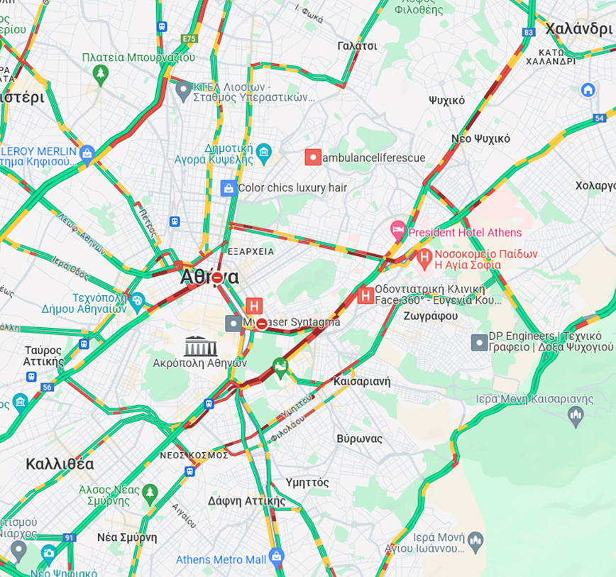 Δείτε τον χάρτη με την κίνηση τώρα στους δρόμους…