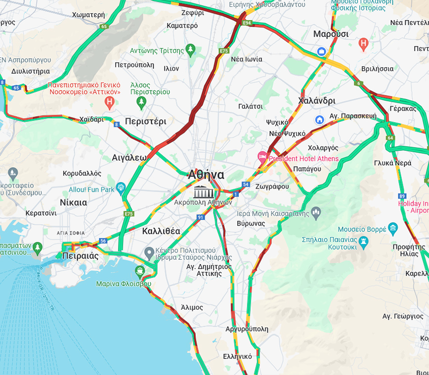 Δείτε τον χάρτη με την κίνηση τώρα στους δρόμους…